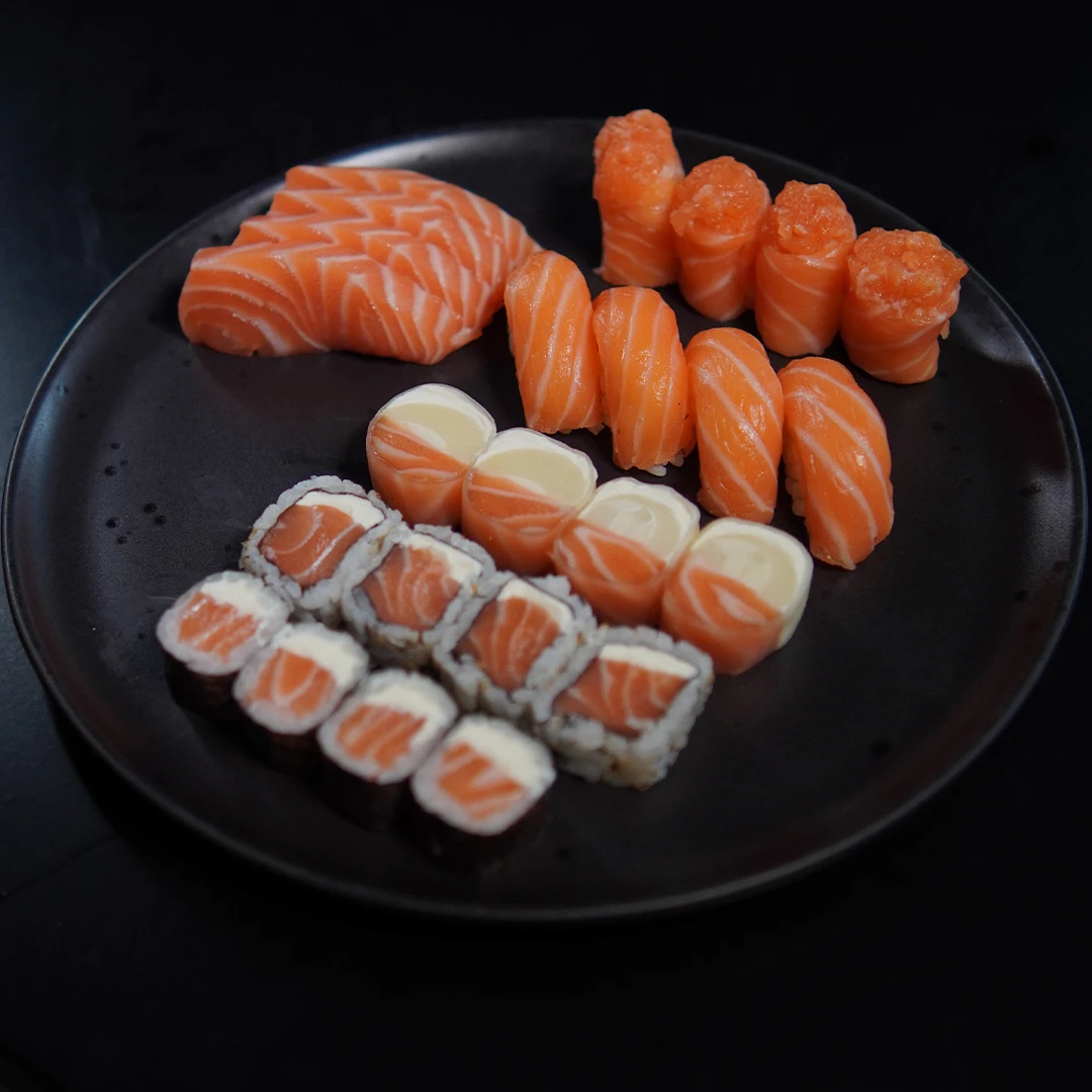 04 Sashimi Salmão 04 Uramaki Filadelfia 01 Temaki Salmão Cheese e Cebolinha